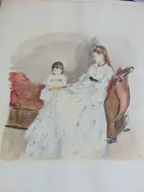 Jonge vrouw en een kind op een bank (mevrouw Pontillon en haar dochter).
