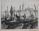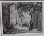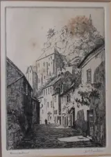 4 etsen van Venetië, Rocamadour, de kathedraal, Grasse en een Franciscaanse kerk, Dubrovnik. Allen in goede staat behalve de Rocamadour ets die wat foxing heeft. Borden meten ongeveer 13 x 9 cm. Etsen met passe-partouts meten 26 x 20 cm.