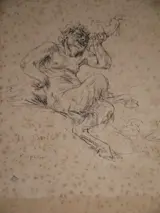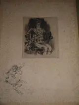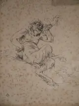inkttekening "de sater met de pop" in de marge van de gravure "mijn oudoom"