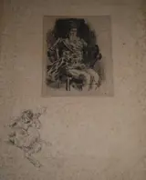 De tekening van grote schoonheid meet ongeveer 14cmx12cm in Oost-Indische inkt en is getiteld en ondertekend