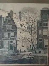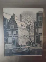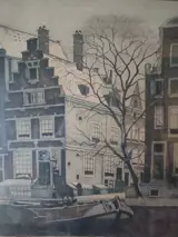 Fraaie ets met afbeelding van een grachtenpand aan de Herengracht Amsterdam.