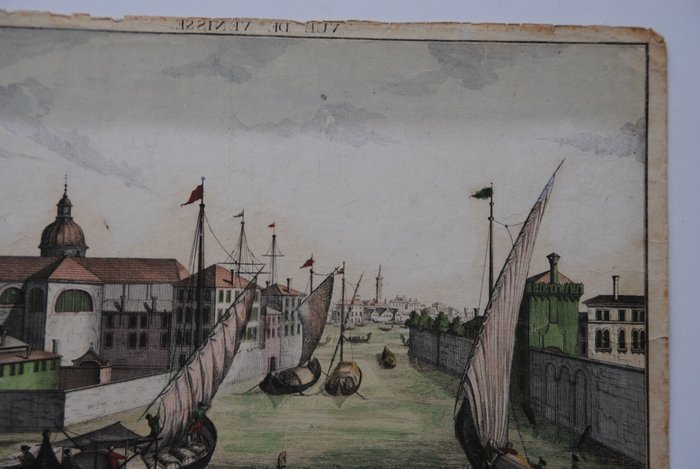 nDecoratief havengenzicht met gondels en boten in het oude Venetië. Links een basiliek. nnFraai oudtijds gekleurde opticaprent door Franz Xaver Habermann (1721-1796). Uitgegeven te Augsburg door de Academie, ca. 1770.nnRedelijke conditie. Fraaie kleuring. Papier wat vuil en wat gebruind met lichte vlekken. De randen wat rafelig, met kleine scheurtjes. Een scheurtje tot in de afbeelding rechts. Verso: blank.nnZie ook de foto's.nnVerzekerde verzending.NULL NULL NULL 2023-02-21 13:58:29 2023-02-21 14:02:15