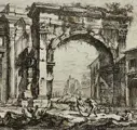 NL Piranesi (1720-1778) architect, graveur en antiquair. Geboren in de heerschappij van Venetië, trainde hij bij Wagner en vervolgens bij Vasi in Rome. Sleutelfiguur van het neoclassicisme, beschouwd als een van de grootste graveurs en landschapsschilders aller tijden.