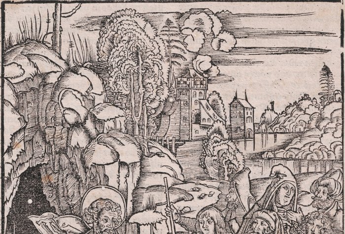 Onze afdruk is hoogstwaarschijnlijk van een andere Nederlandse eerdere editie, in ieder geval vóór het doormidden snijden en vóór het bijsnijden van het andere houtblok in 1517. (Ik heb die andere houtsnede uit dezelfde bron en het is voordat het blok doormidden werd gesneden)