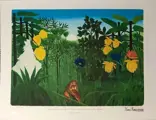 Werken van Henri Rousseau (1844-1910), bekend als Le Douanier Rousseau, Franse schilder. Hij wordt beschouwd als een belangrijke vertegenwoordiger van de naïeve kunst. Hij komt uit een bescheiden gezin en studeerde rechten voordat hij naar Parijs vertrok, waar hij in een beurs werkte. Deze functie leverde hem zijn bijnaam "douanebeambte" op. Hij leerde zichzelf schilderen en maakte een groot aantal doeken, waarop vaak junglelandschappen zijn afgebeeld. Hij heeft Frankrijk echter nooit verlaten. Zijn inspiratie haalt hij vooral uit geïllustreerde boeken, botanische tuinen en ontmoetingen met soldaten die hadden deelgenomen aan de Franse interventie in Mexico. Zijn doeken vertonen een ingewikkelde techniek, maar hun kinderlijke uiterlijk leverde Henri Rousseau veel spot op. Gewend aan de Salon des Indépendants, kreeg hij vanaf 1891 positieve recensies en ontmoette hij enkele andere kunstenaars aan het einde van zijn leven, zoals Robert Delaunay, Paul Signac, Guillaume Apollinaire, Jean Léon Gérôme, Alexandre Cabanel, Edgar Degas, William Bouguereau, Paul Gauguin, Alfred Jarry, Toulouse-Lautrec en Pablo Picasso. Zijn werk wordt nu als cruciaal beschouwd voor naïeve kunst en hij heeft veel kunstenaars beïnvloed, waaronder surrealisten.