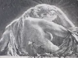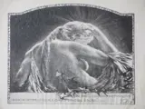 Voorstelling van een halfnaakte vrouw omringd door zwaluwen en goddelijk licht
