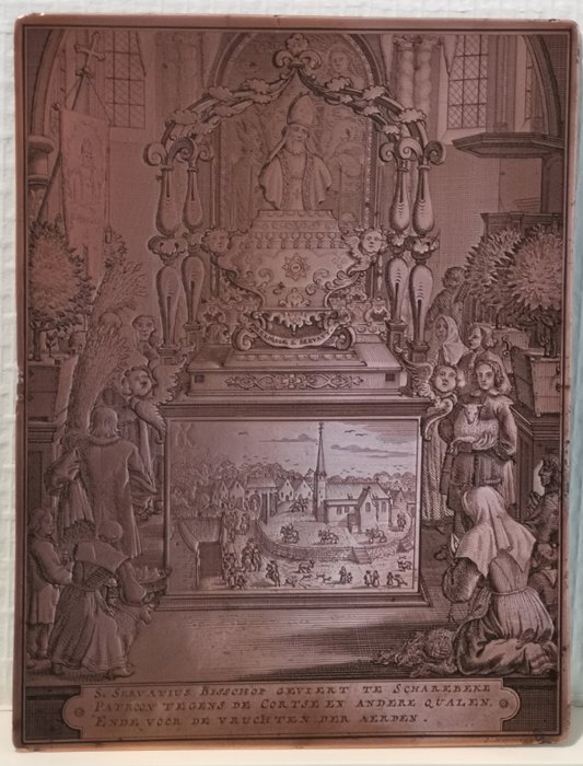 Titel: St. Servatius Bisschop geviert te Scharebeke (Schaarbeek bij Brussel). Patroon tegen de cortsen en andere qualen. Ende voor de vruchten der Aerden.