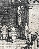 Deze prent maakt deel uit van een serie van 16 prenten, bestaande uit een titelpagina en 15 afbeeldingen van de martelingen van de apostelen