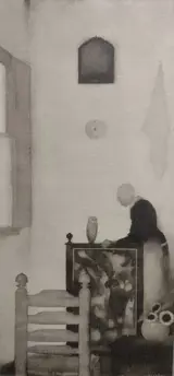 Jan Mankes is toont in deze verstilde compositie zijn meesterschap. De gelijkenis met de grote Hollandse meesters, i.h.b. Johannes Vermeer istreffend.