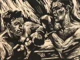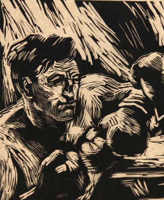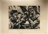 Linksonder in het Pools geschreven in potlood: Drzeworyt - Bokserzy ( Woodcut Boxer)