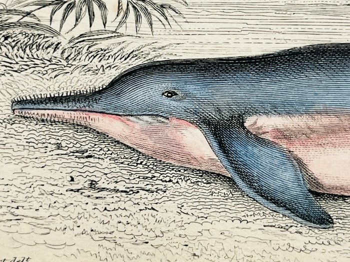 6 fraaie antieke zeezoogdierafdrukken van dieren, scherpe staalgravures met originele en heldere originele handkleuring.
