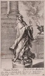 Het werk is rechtsonder gemonogrammeerd en is uitgegeven in Augsburg.