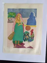 Verkocht zonder lijst, in redelijke staat, afmeting 19 x 16 cm.