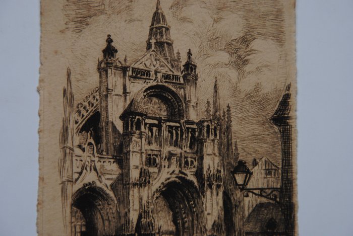 nZicht op de Onze-Lieve-Vrouwekerk van Koudebeek (Caudebec-en-Caux).nnEts. Onduidelijk gesigneerd rechtsonder "Ch. May sc." (?).nnGoede conditie. Papier iets gebruind. Onafgesneden randen. Verso: blank, met restanten van een vroegere bevestiging.nnZie ook de foto's.nnVerzekerde verzending.NULL NULL NULL 2023-02-22 15:26:20 2023-02-22 15:31:37