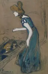 Eerbetoon aan Toulouse-Lautrec: Jane Avril in het blauw
