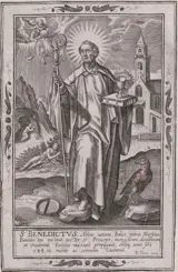 Sint-Benedictus. De Italiaanse monnik uit de zesde eeuw die de orde van de benedictijn stichtte;
