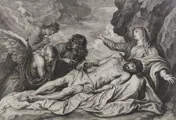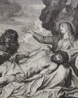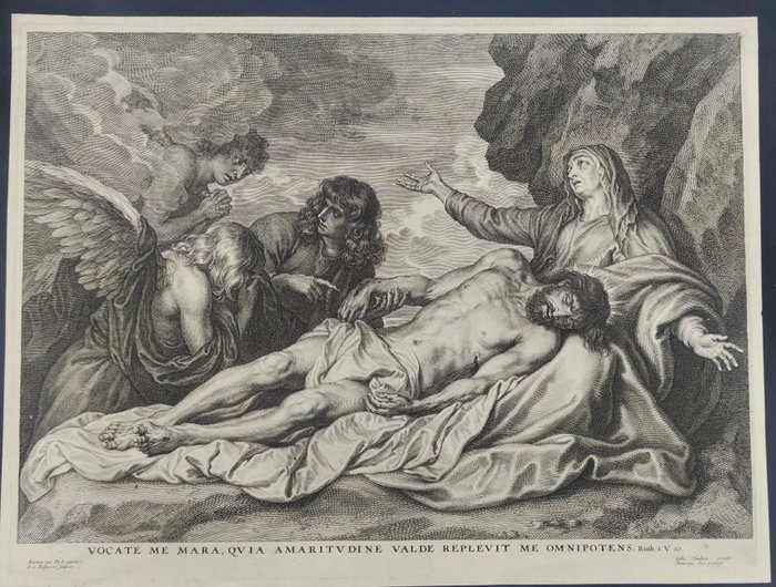 "Vocate me Mara, quia amaritudine valde replevit me Omnipotens" en "Antonius van Dyck pinxit. S. à Bolswert sculpsit / Martinus vanden Enden excudit Antwerpiae Cum privilegio"