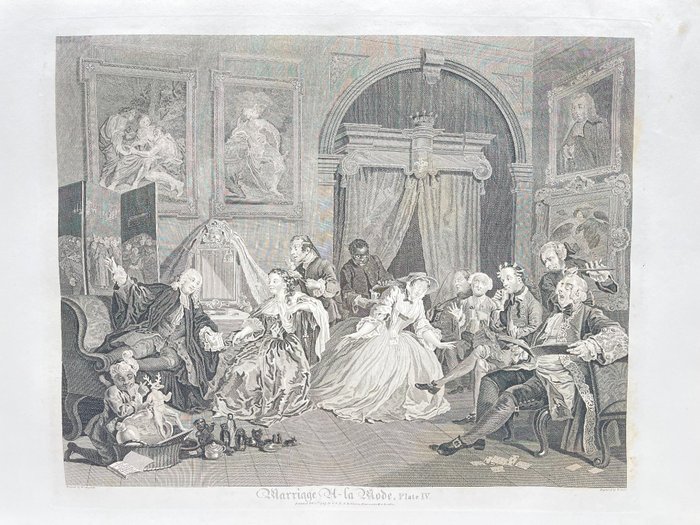 Set van 2 prenten. Schitterende grote foliogravure is van The Whole Works of the Celebrated William Hogarth, zoals oorspronkelijk gepubliceerd. Het werk werd tussen 1791 en 1802 in Londen gepubliceerd. Elke gravure heeft donkere afdrukken en is op dik velijnpapier. De gravures werden voltooid door Thomas Cook London: Thomas Davison voor John Stockdale, John Walker en G. Robinson, 1806.