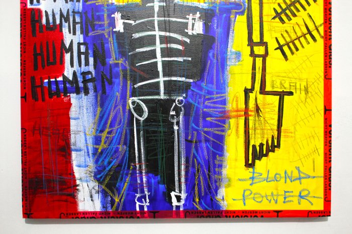 Handgeschilderd kunstwerk (acryl) op katoenen canvas + Marker acryl + Oliepastels