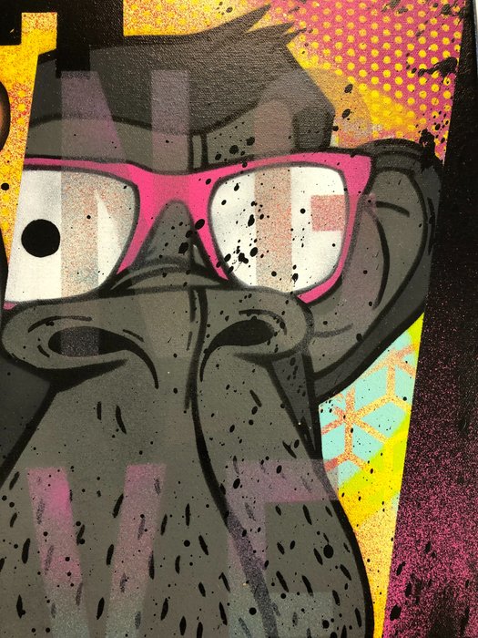 13.13. komt oorspronkelijk uit de straatkunstscene van de jaren 2000. Dat zie je vandaag de dag nog steeds. Zijn kunst is een wilde mix van graffiti-elementen, wilde kleurencombinaties en bekende popcultuurmotieven. Gezichten als Frida Kahlo, Nick Cave of Steve McQueen dienen als stencils op de doeken van 13.13. Ze krijgen allemaal een behandeling op de fijnste street art-manier. Ze krijgen spuitverf in het oog, vis in het gezicht en scheuren over het hoofd. Toch worden ze nooit onleesbaar gemaakt. Eén ding is duidelijk: zelfs vandaag de dag maakt de stedelijke ruimte, het imperfecte, altijd deel uit van zijn kunst.