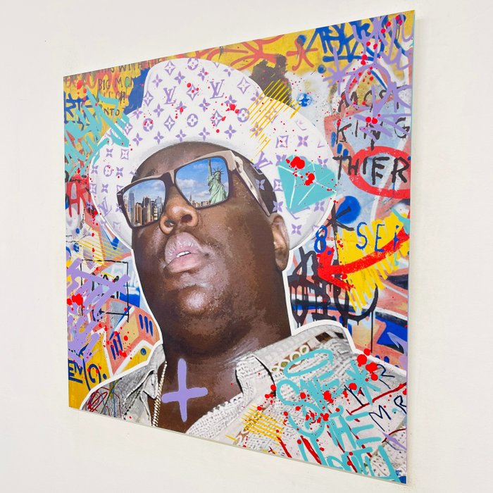 De kunstenaar: Aiiroh, geboren in het zuiden van Frankrijk in 1987, is een Franse kunstenaar. Hij tekent en schildert van jongs af aan. Hij werkt al enkele jaren als grafisch ontwerper in Frankrijk en Zwitserland en laat zich inspireren door Pop Art en New Pop Art trends. In sommige van zijn werken verwerkt Aiiroh markeringen om mensen te herinneren aan hun verslaving aan consumentenproducten. De grafische kracht van deze grote merken heeft zowel een effect op ons collectieve onbewuste als op onze esthetische codes. In navolging van zijn voorgangers gebruikt Aiiroh gemengde en actuele media, zoals de collage van Swarowsky-kristallen, acrylverf of spuitverf en stencils.
