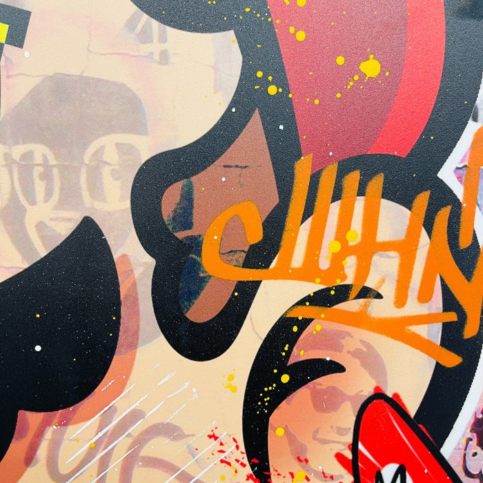 De kunstenaar: Aiiroh, geboren in het zuiden van Frankrijk in 1987, is een Franse kunstenaar. Hij tekent en schildert van jongs af aan. Hij werkt al enkele jaren als grafisch ontwerper in Frankrijk en Zwitserland en laat zich inspireren door Pop Art en New Pop Art trends. In sommige van zijn werken verwerkt Aiiroh markeringen om mensen te herinneren aan hun verslaving aan consumentenproducten. De grafische kracht van deze grote merken heeft zowel een effect op ons collectieve onbewuste als op onze esthetische codes. In navolging van zijn voorgangers gebruikt Aiiroh gemengde en actuele media, zoals de collage van Swarowsky-kristallen, acrylverf of spuitverf en stencils.