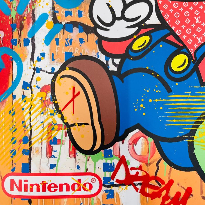 De kunstenaar: Aïroh, geboren in het zuiden van Frankrijk in 1987, is een Franse kunstenaar. Hij tekent en schildert van jongs af aan. Hij werkt al enkele jaren als grafisch ontwerper in Frankrijk en Zwitserland en laat zich inspireren door Pop Art en New Pop Art trends. In sommige van zijn werken verwerkt Aïroh markeringen om mensen te herinneren aan hun verslaving aan consumentenproducten. De grafische kracht van deze grote merken heeft zowel een effect op ons collectieve onbewuste als op onze esthetische codes. In navolging van zijn voorgangers gebruikt Aiiroh gemengde en actuele media, zoals de collage van Swarowsky-kristallen, acrylverf of spuitverf en stencils.
