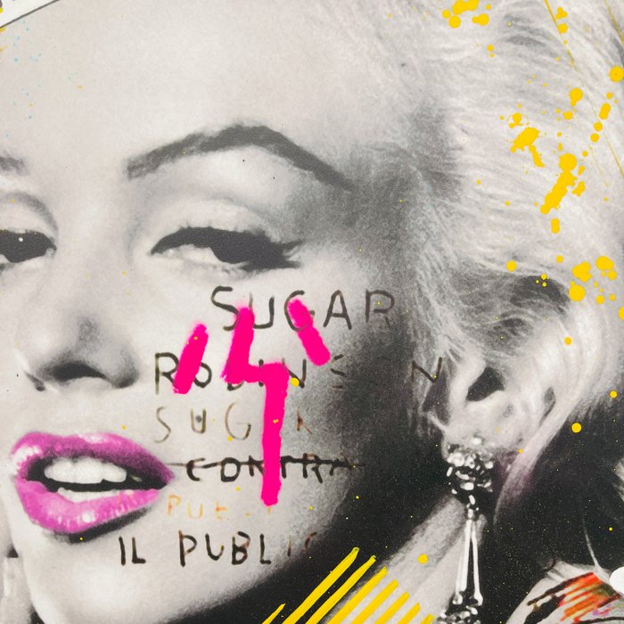 De kunstenaar: Aiiroh, geboren in het zuiden van Frankrijk in 1987, is een Franse kunstenaar. Hij tekent en schildert van jongs af aan. Hij werkt al enkele jaren als grafisch ontwerper in Frankrijk en Zwitserland en laat zich inspireren door Pop Art en New Pop Art trends. In sommige van zijn werken verwerkt Aiiroh markeringen om mensen te herinneren aan hun verslaving aan consumentenproducten. De grafische kracht van deze grote merken heeft zowel een effect op ons collectieve onbewuste als op onze esthetische codes. In navolging van zijn voorgangers gebruikt Aiiroh gemengde en actuele media, zoals de collage van Swarowsky-kristallen, acrylverf of spuitverf en stencils.