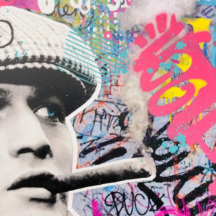 De kunstenaar: Aiiroh, geboren in het zuiden van Frankrijk in 1987, is een Franse kunstenaar. Hij tekent en schildert van jongs af aan. Hij werkt al enkele jaren als grafisch ontwerper in Frankrijk en Zwitserland en laat zich inspireren door Pop Art en New Pop Art trends. In sommige van zijn werken verwerkt Aiiroh markeringen om mensen te herinneren aan hun verslaving aan consumentenproducten. De grafische kracht van deze grote merken heeft zowel een effect op ons collectieve onbewuste als op onze esthetische codes. In navolging van zijn voorgangers gebruikt Aiiroh gemengde en actuele media, zoals de collage van Swarowsky-kristallen, acrylverf of spuitverf en stencils.