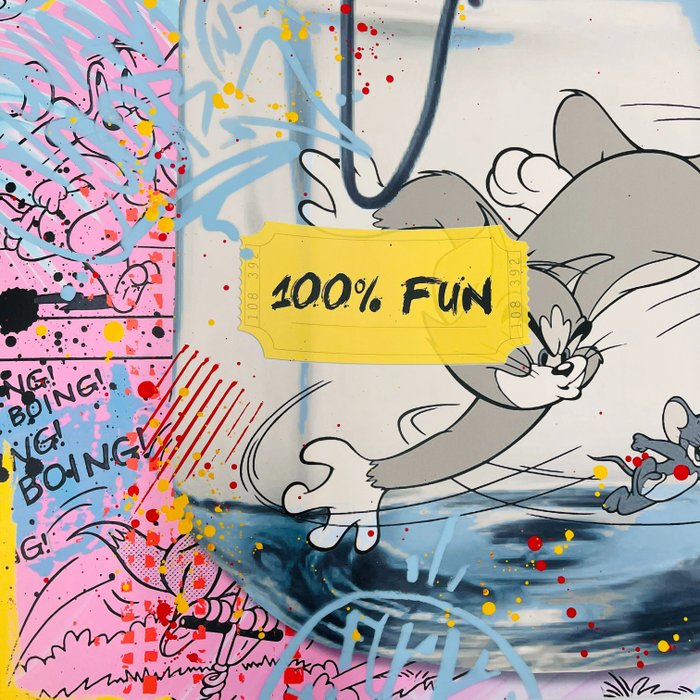 De kunstenaar: Aïroh, geboren in het zuiden van Frankrijk in 1987, is een Franse kunstenaar. Hij tekent en schildert van jongs af aan. Hij werkt al enkele jaren als grafisch ontwerper in Frankrijk en Zwitserland en laat zich inspireren door Pop Art en New Pop Art trends. In sommige van zijn werken verwerkt Aïroh markeringen om mensen te herinneren aan hun verslaving aan consumentenproducten. De grafische kracht van deze grote merken heeft zowel een effect op ons collectieve onbewuste als op onze esthetische codes. In navolging van zijn voorgangers gebruikt Aiiroh gemengde en actuele media, zoals de collage van Swarowsky-kristallen, acrylverf of spuitverf en stencils.