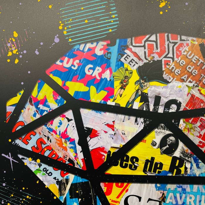 De kunstenaar: Aiiroh, geboren in het zuiden van Frankrijk in 1987, is een Franse kunstenaar. Hij tekent en schildert van jongs af aan. Hij werkt al enkele jaren als grafisch ontwerper in Frankrijk en Zwitserland en laat zich inspireren door Pop Art en New Pop Art trends. In sommige van zijn werken verwerkt Aiiroh markeringen om mensen te herinneren aan hun verslaving aan consumentenproducten. De grafische kracht van deze grote merken heeft zowel een effect op ons collectieve onbewuste als op onze esthetische codes. In navolging van zijn voorgangers gebruikt Aiiroh gemengde en actuele media, zoals de collage van Swarowsky-kristallen, acrylverf of spuitverf en stencils.