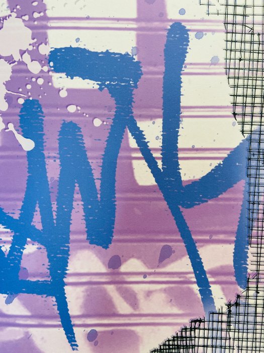 Limited edition stuk (/10), genummerd en gesigneerd door de twee kunstenaars. Stencil van Aiiroh en met de hand gestencild door Collell.