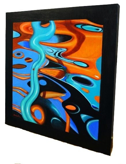 Alan werd geïnspireerd om deze serie schilderijen te beginnen toen hij zich bewust werd van de bizarre patronen die verschijnen en onmiddellijk weer verdwijnen op het oppervlak van relatief kalm water.