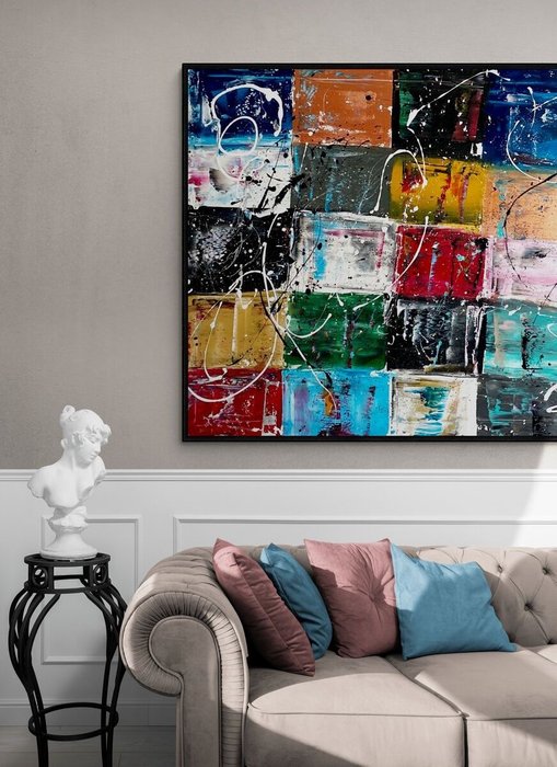 Abstract op 100% Italiaans canvas met acrylverf en acrylspray, van uitstekende kwaliteit. Briljante en heldere kleuren
