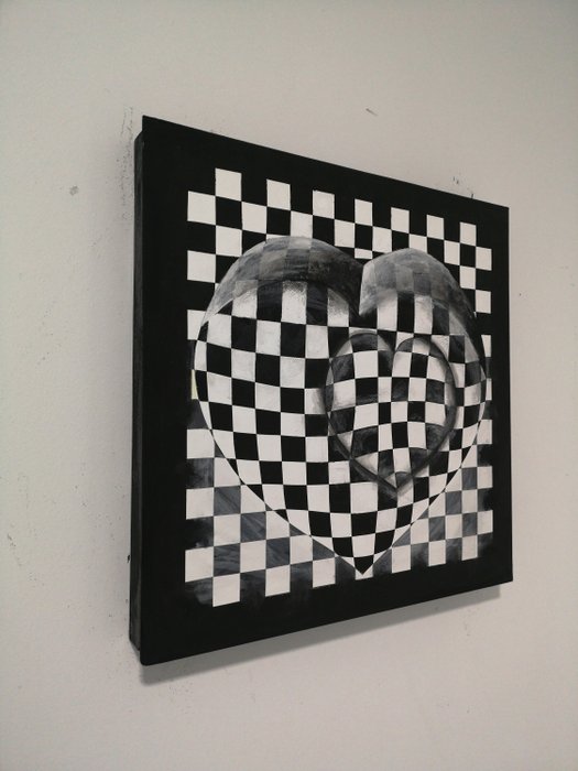 Optisch kunstwerk, mijn grote liefde origineel stuk gemaakt met acrylverf op paneel door onze kinetische kunstkunstenaar, elke dag in zijn atelier blijft hij verrassen met zijn werken, het wordt klaar om op te hangen geleverd.