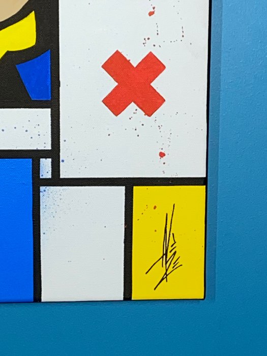"Homer" uit de collectie "Mondriaan & vrienden" zal uw interieur verfraaien, uniek en origineel werk, het is klaar om op te hangen.