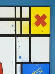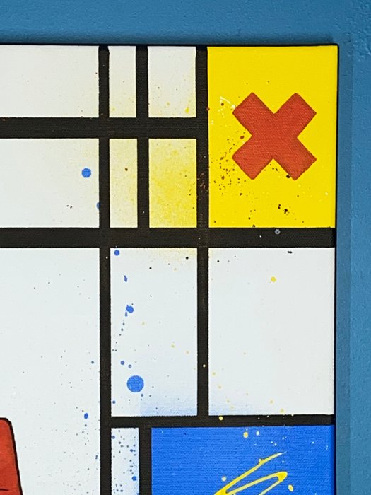 "Snoopy" uit de collectie "Mondriaan & vrienden" zal uw interieur verfraaien, uniek en origineel werk, het is klaar om op te hangen.