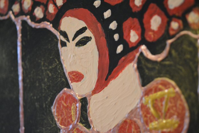 Kleurkenmerken: zwart, rood, beige, goud, rose
