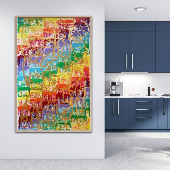 Grote, gedurfde en levendige kleuren geometrisch en expressief abstract. Perfect voor moderne interieurs, kantoren en wachtkamers.