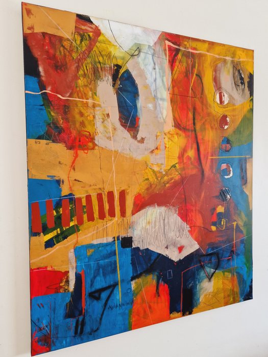Materialen: acryl, oliepastels, potloden op canvas van hoge kwaliteit.