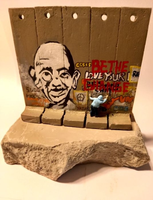 Deze multiple is een miniatuurreproductie van de Palestijnse scheidingsmuur, exclusief uitgegeven door Banksy's The Walled Off Hotel in Bethlehem (Palestina). De vormen zijn door Banksy zelf bedacht en in beperkte oplage geproduceerd in Engeland. De graffiti werd aangebracht onder het gezag van Banksy en onder auspiciën van Palestijnse kunstenaars. Elk van de objecten is uniek, omdat ze met de hand zijn beschilderd, elk met verschillende details en inscripties.