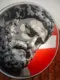 Gemaakt met spuitverf op een buiten gebruik gesteld verkeersbord.