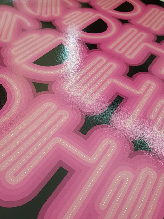 'SOHO' is een uitstekende handgetekende zeefdruk in beperkte oplage van Ben Eine, in 9 "roze" tinten met een UV-scherm, waardoor het kunstwerk echt schittert! Gemaakt op zeer goede kwaliteit 330gsm Coventry Rag Paper. Het meet 73 cm x 85 cm, is gesigneerd en genummerd door de kunstenaar en maakt deel uit van een gelimiteerde oplage van in totaal slechts 25.