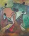 Dit schilderij rechtsonder Gesigneerd Benedetti lijkt personages op een achtergrond van de natuur te vertegenwoordigen.