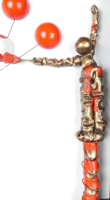 Karakter in gepatineerde hars op metalen structuur