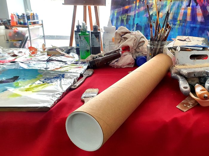 Een acryl- en olieverfschilderij, met texturen, elegant en sfeervol, van de stad Porto in Portugal, bij zonsondergang, met al zijn nachtverlichting en weerspiegelingen in het water. Het is een stuk van groot formaat. De stof wordt opgerold verzonden in een sterke buis, vanwege het grote formaat en om de veiligheid te garanderen. Ontworpen voor een chassis van 160 x 110 x 2 cm. De verzonden stof is groter.