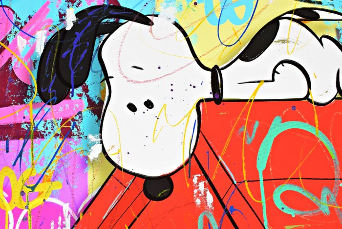 Origineel werk: acrylverf, spuitverf, kleurpotloden en stiften op canvas.