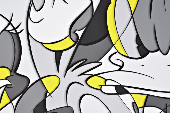 Origineel werk: acrylverf, spuitverf, kleurpotloden en stiften op canvas.