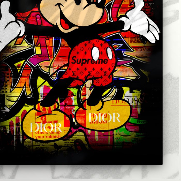Dit kunstwerk gemaakt met Mickey Mouse als inspiratie bron is erg uniek en vooral heel bijzonder. Dit unieke 1/50 handgemaakte kunstwerk is gemaakt van verf, vinyl. De verf is is ook met speciale manieren gespoten waardoor je echt een metallic effect krijgt. Het Formaat is 85x60 cm. Dit kunstwerk is zelf door Daluxe Art gesigneerd. Verzending gaat via Postnl.