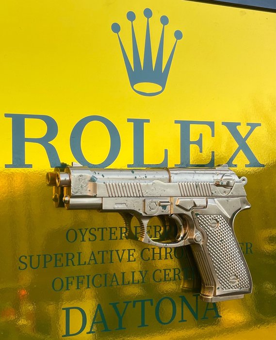Dit kunstwerk gemaakt met Rolex als inspiratie bron is erg uniek en vooral heel bijzonder. Dit unieke 4/50 handgemaakte kunstwerk is gemaakt van verf, vinyl. De verf is is ook met speciale manieren gespoten waardoor je echt een metallic effect krijgt. Het Formaat is 50x40 cm. Dit kunstwerk is zelf door Daluxe Art gesigneerd. Verzending gaat via Postnl.